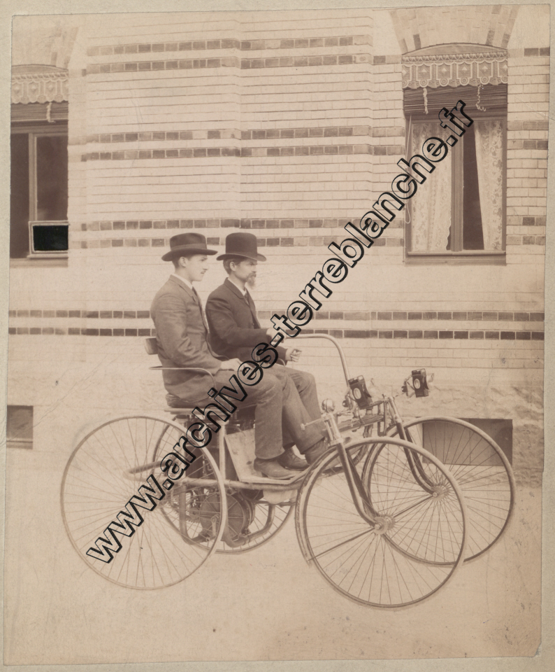Maybach et Paul Daimler sur le quadricycle Daimler