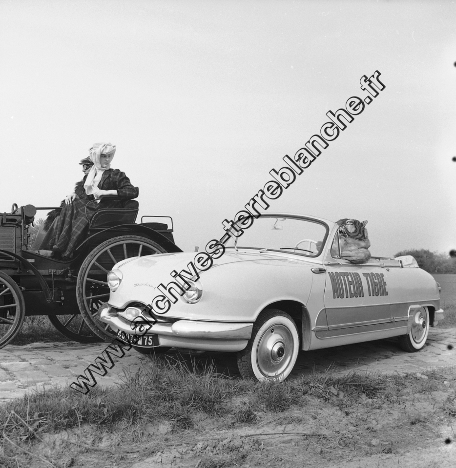 Présentation du moteur tigre, cabriolet Dyna type Z17 à côté du dog cart de 1892