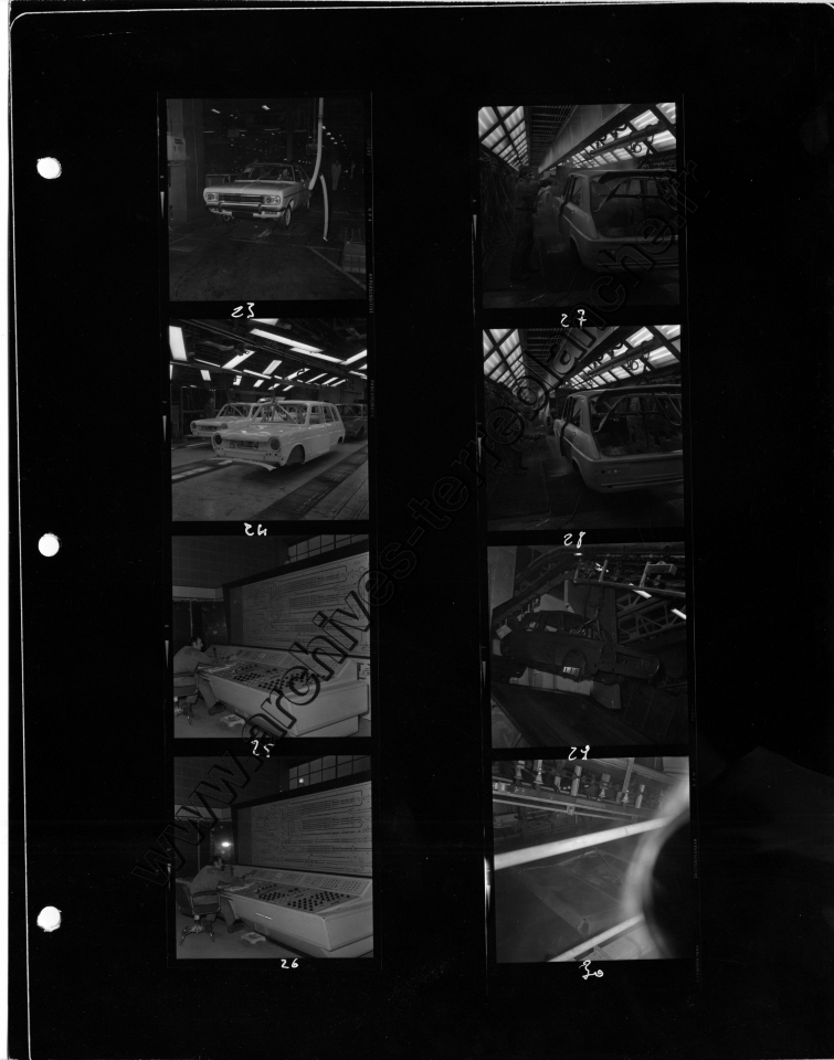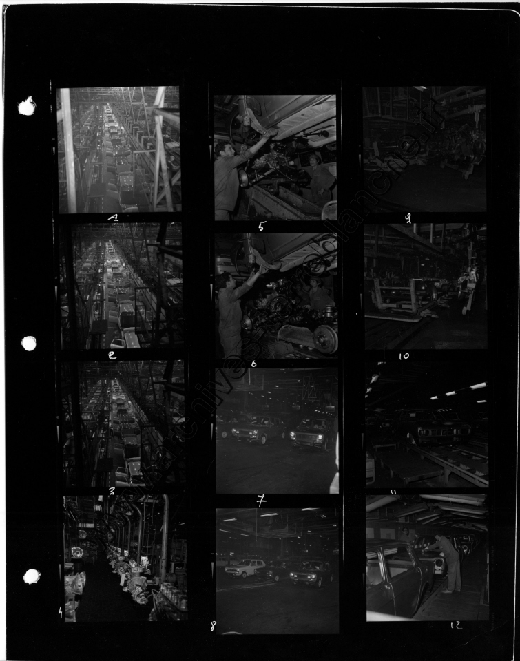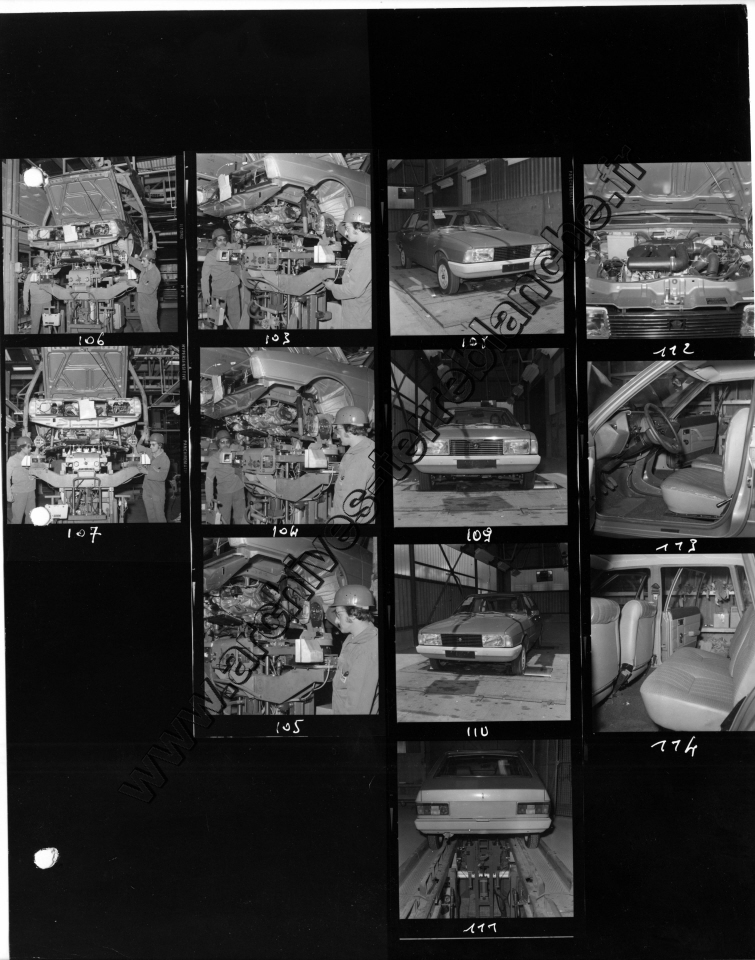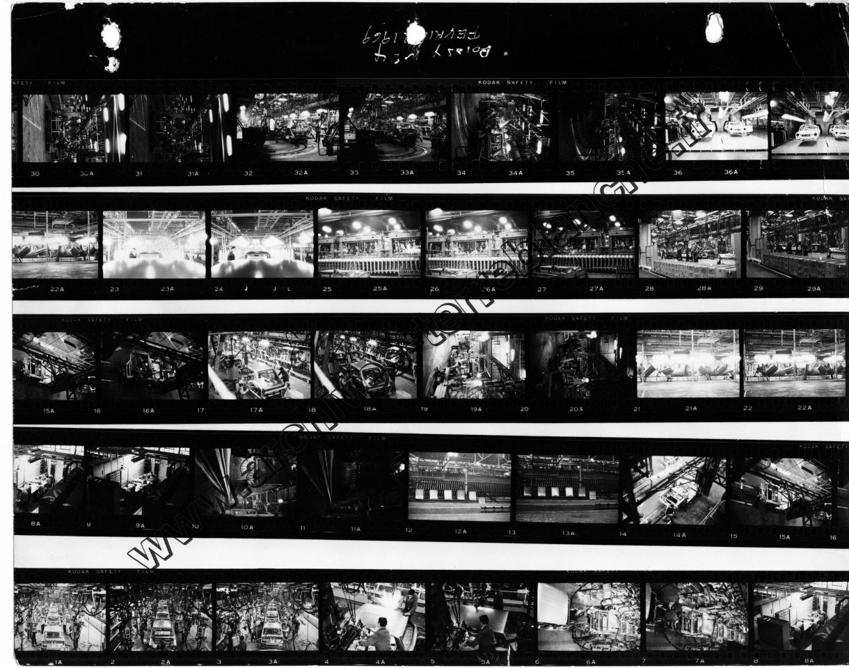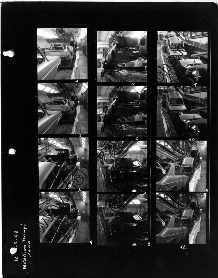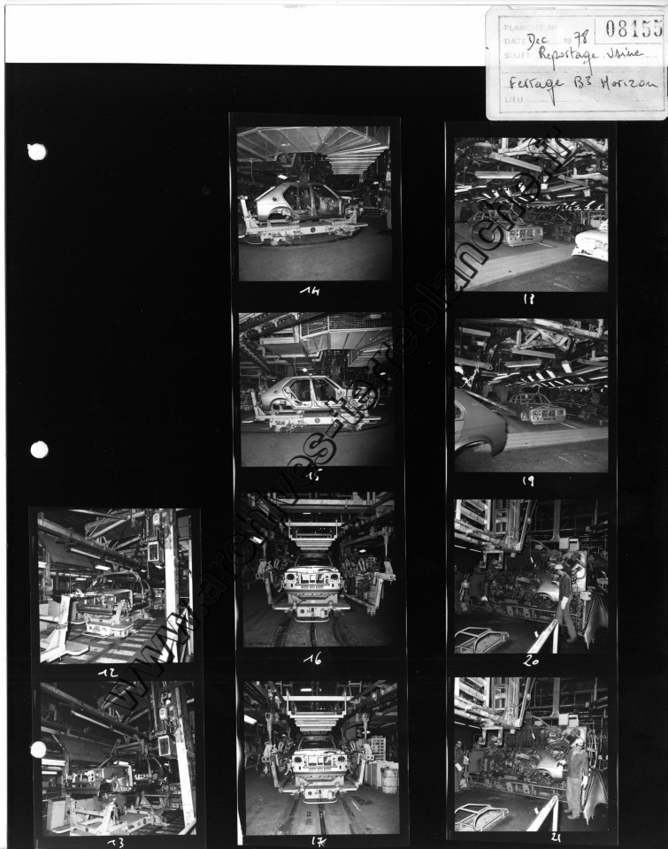 Chrysler France.- Processus de fabrication. 1000000ème Simca 1000, protection trempé mi-caisse, ligne peinture, ferrage, montage (Chrysler 180) , pistolage laque, retouche peinture bout d'usine, bondérisation, phosphatation (Simca 1000) (Poissy, Tours)