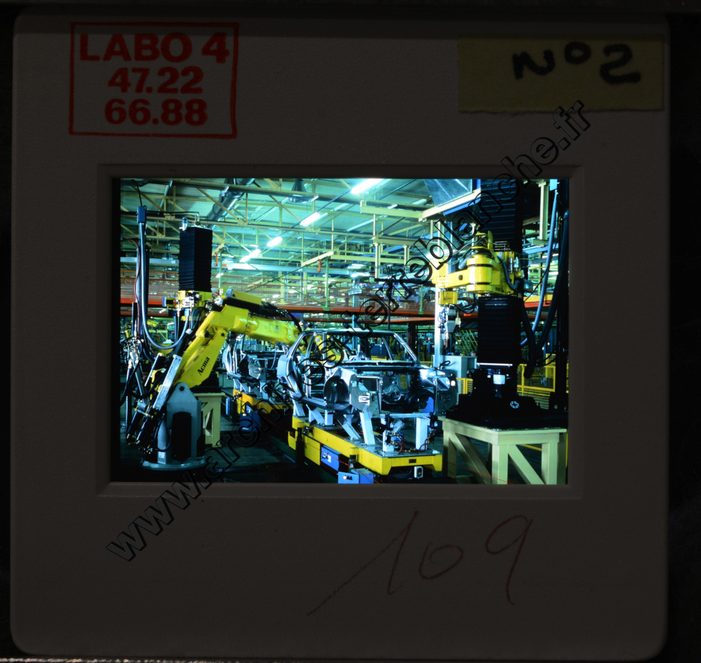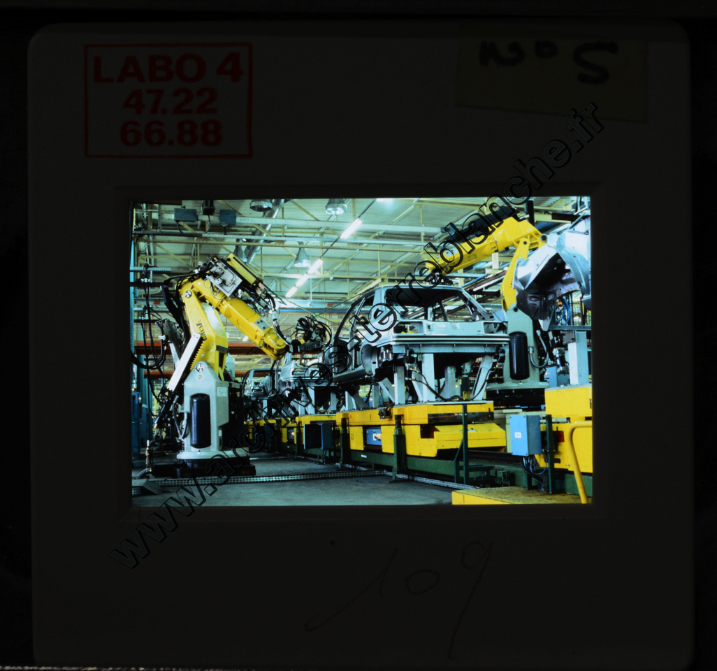 Automobiles Peugeot.- Rétrospective Peugeot, historique. Gamme, 305, 309, 104. Processus de fabrication (Poissy)