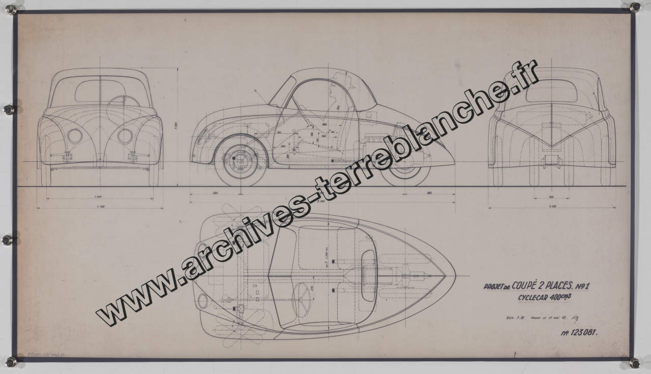 Coupé 2 places Cyclecar 400cm3.- Projet n°1 : plan d'ensemble