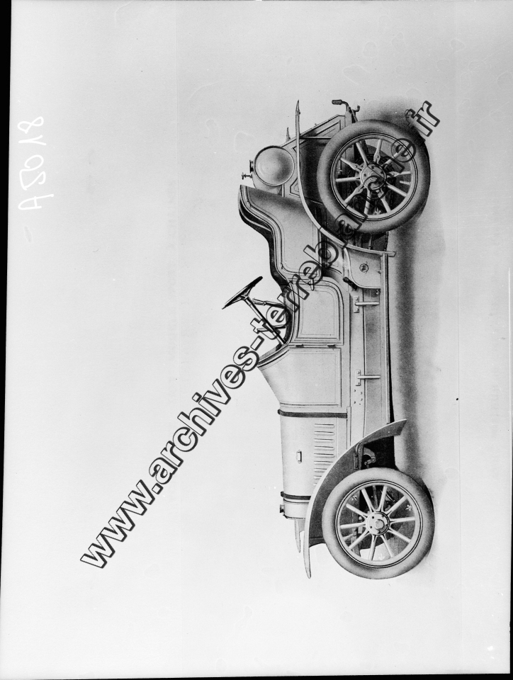 Voiture "Lion Peugeot" deux places moteur deux cylindres en V puissance 16 HP transmission à chaînes.