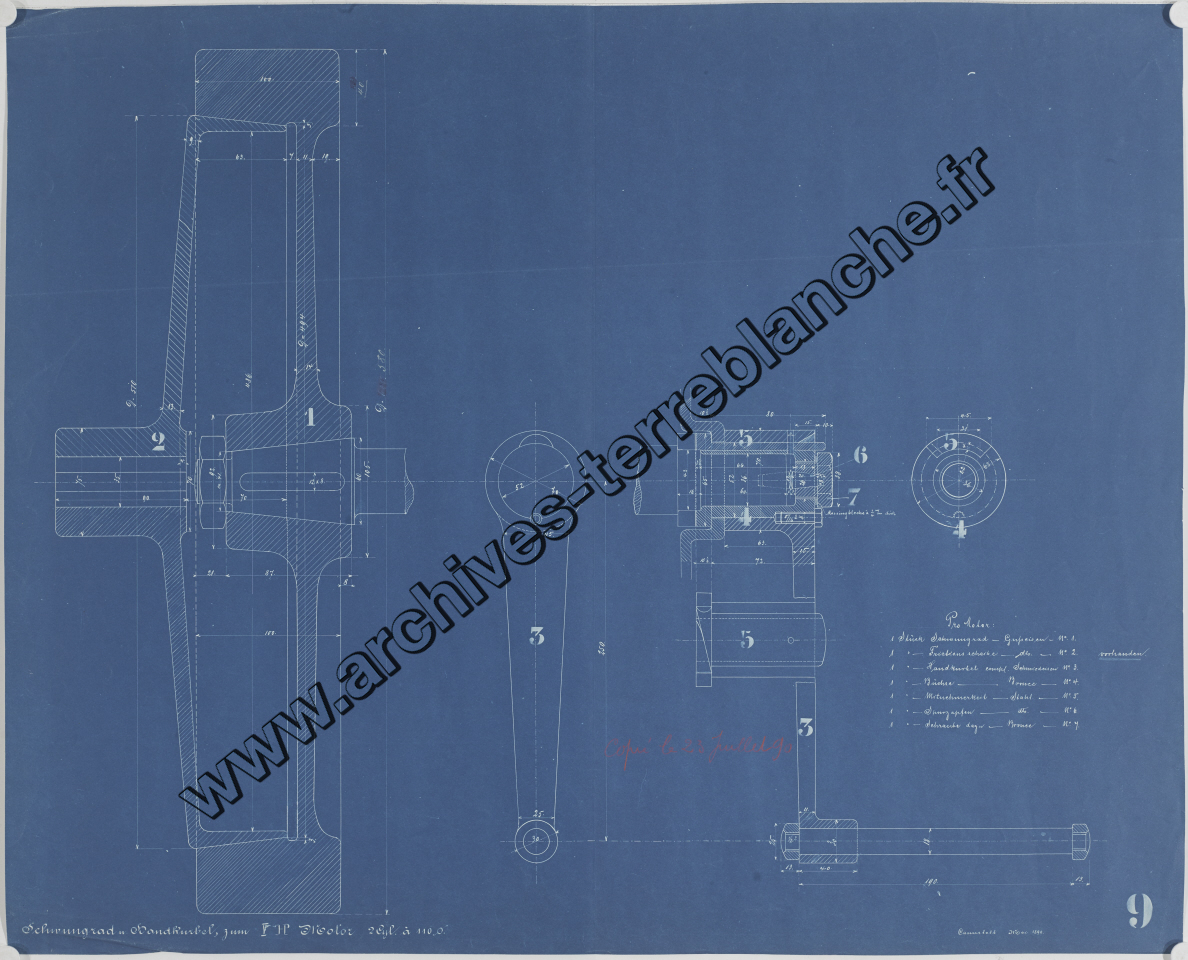 Moteur fixe Daimler 5 chevaux 2 cylindres, sous ensemble manivelle de guidage : plan d'ensemble