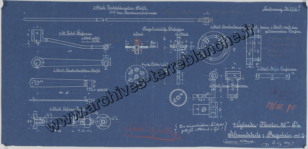 Moteur fixe Daimler 5 chevaux 4 cylindres, pièces forgées [acier] : vue d'ensemble