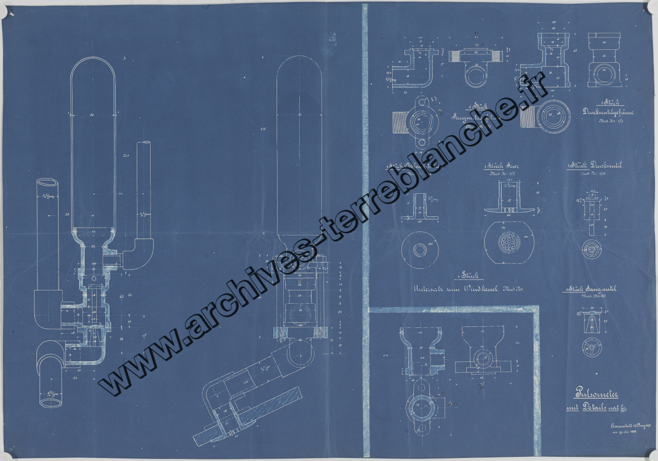 Moteur fixe Daimler 10 chevaux 4 cylindres, sous ensemble pulsomètre : plan d'ensemble