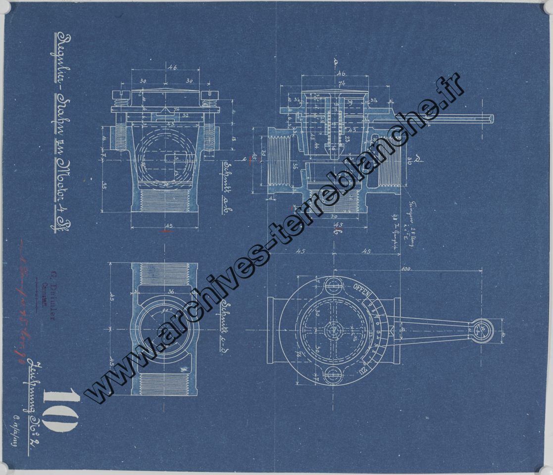Moteur fixe Daimler P2F 4 chevaux 2 cylindres, vanne de régulation : plan d'ensemble