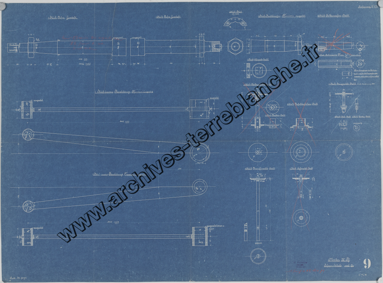 Moteur fixe Daimler B9075 P2F 4 chevaux 2 cylindres, sous ensemble bielles : plan d'ensemble