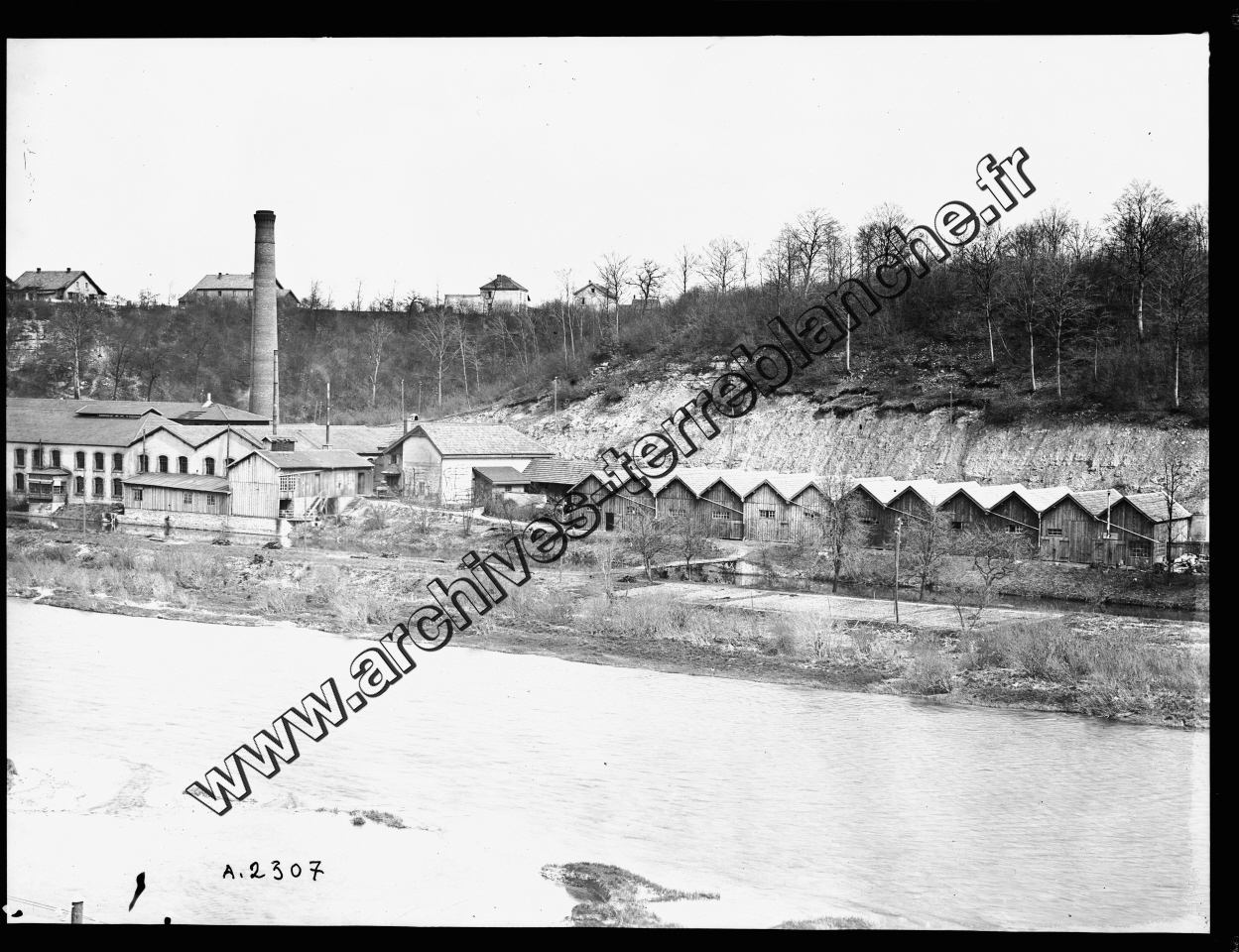 Usine au bord d'une rivière (Doubs) à Valentigney.