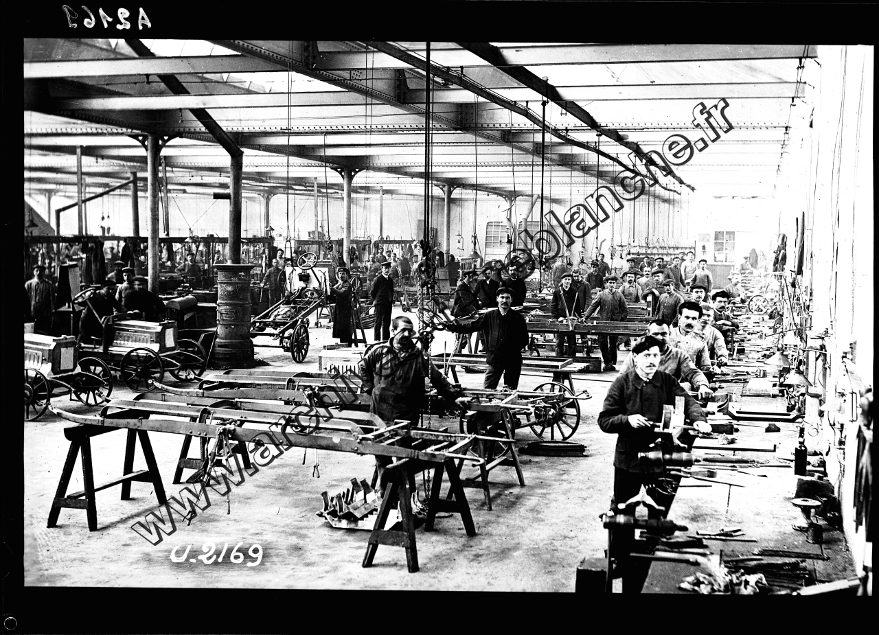 Atelier montage châssis. Présence d'ouvriers
