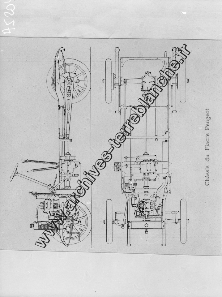 Plan d'un châssis de voiture moteur deux cylindres puissance 12 HP.