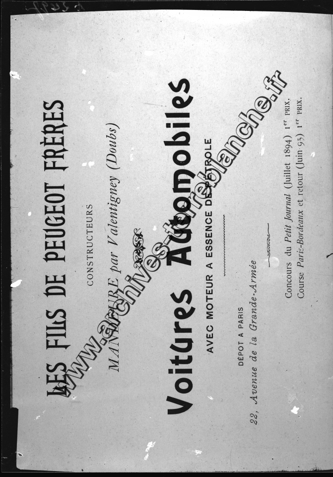 Catalogue de voitures "Les Fils de Peugeot Frères".- Description des véhicules type 1 à 6 et des accessoires, conditions de vente.