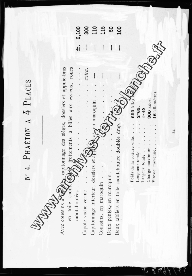 Catalogue de voitures "Les Fils de Peugeot Frères".- Description des véhicules type 1 à 6 et des accessoires, conditions de vente.