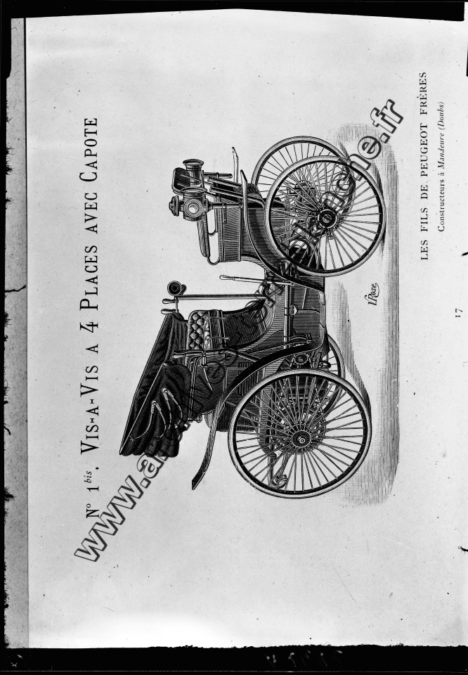 Catalogue de voitures.- Voiture type 4 quatre places avec capote, gravure.