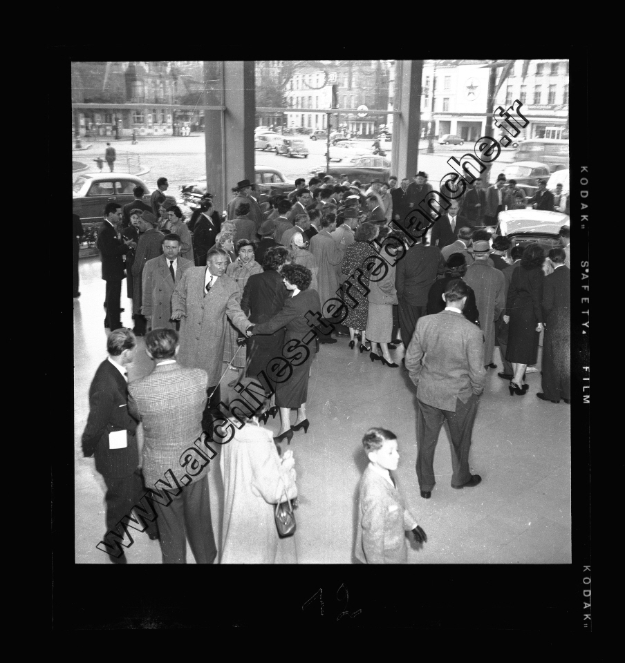 Automobiles Citroën. - DS 19, salle d'exposition avec foule : photographies.